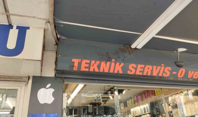 Arıları kutu içerisine toparlamaya çalışan Turgut Erturunç, "Sabah dükkanı açmaya geldiğim zaman dükkanın tabelasına yığılmışlardı. Yoldan geçen birisi gelmiş arıların yarısını almış yarısı kalmış. Kraliçe arıyı almamış. Belediyenin ekipleri geldi arıları zehirlemek istediler. Arıların zehirlenmesine izin vermedik. Kutu getirdik Kraliçe arıyı kutu içerisine aldık. Yavaş yavaş tüm arıları kutu içerisine alacağız" dedi.