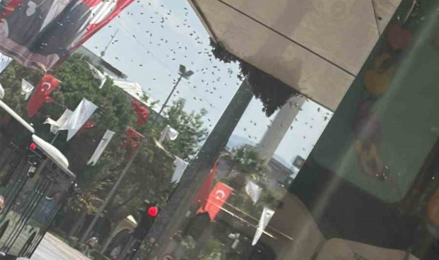 Denizli'de kovandan kaçan kraliçe arı şehir merkezine geldi. Kraliçe arıyı takip eden diğer bal arıları Denizli Çınar Meydanını istila etti.