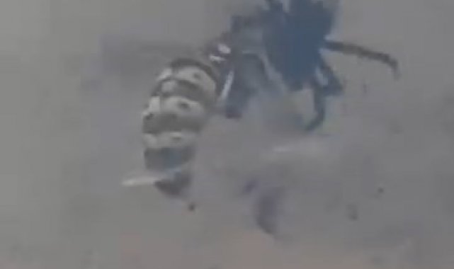 Elazığ'da örümcek ağına takılan arının kurtulma çabası cep telefonu kamerasına yansıdı. Görüntülerde, ağın bulunduğu alana gelen arıyı fark eden örümcek, ağdan kurtulamayan arıyı sarmaya başladığı görülüyor. Etrafını saran ağlardan kurtulmaya çalışan arının çabaları boşa çıkarken, o anlar ise bir vatandaşın cep telefonu kamerasına yansıdı.