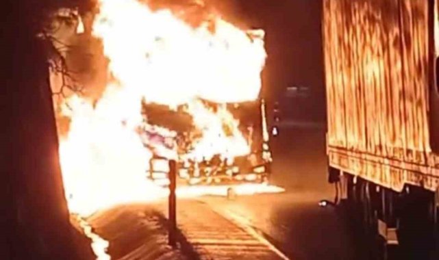 Edinilen bilgiye göre, Bursa-İstanbul Otoyolu'nda seyir halindeki bir tır motor kısmından alev aldı. Aracın alev aldığını fark eden sürücü, tırı hemen emniyet şeridine çekti. Bir anda harlanan alev, aracı adeta alev topuna çevirdi. Çevredekilerin müdahalesi yetersiz kalınca 112 ekiplerine bilgi verildi. İhbar üzerine olay yerine itfaiye sevk edildi. İtfaiye ekiplerince söndürülen yangında araç kullanılamaz hale gelirken, olayla ilgili tahkikat başlatıldı.