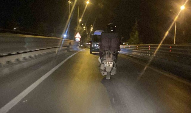 Arka ışıkları yanmayan motosikletli hem kendisini hem de trafiği tehlikeye düşürdü