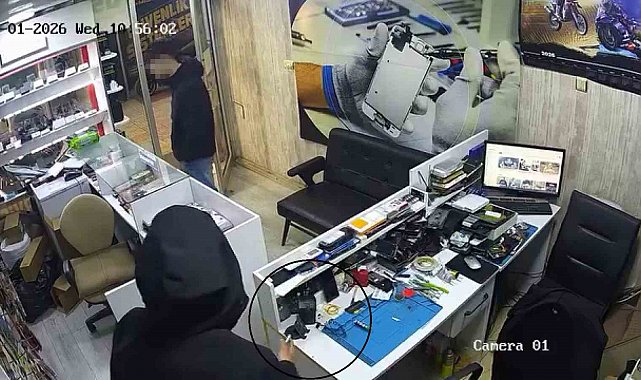 Olay, Dörtyol ilçesi kent merkezinde yaşandı. İlçe merkezinde cep telefonu tamir işletmesi bulunan Bilgehan Gür'ün camiye gittiğini ve iş yerinin boş olduğunu fark eden 2 kişi içeriye girdi. İş yerinde kutuları kontrol eden şahıs, bir süre sonra arka kısımda bulunan 15 bin TL değerindeki cep telefonunu çaldı. Anbean kameraya yansıyan hırsızlıkta şahsın, arkadaşının 'oha lan harbiden kamera var' deyişine aldırış etmemesiyse dikkat çekti. Telefonu aldıktan sonra arkadaşının 'çalışıyor mu' diyerek telefonun çalışıp çalışmadığını teyit etmesiyse kamera görüntülerinde duyuldu. İş yeri sahibi Gür'ün şikayeti sonrası 2 şahıs da kısa sürede yakalandı. Zanlıların emniyetteki işlemlerinin devam ettiği öğrenildi.