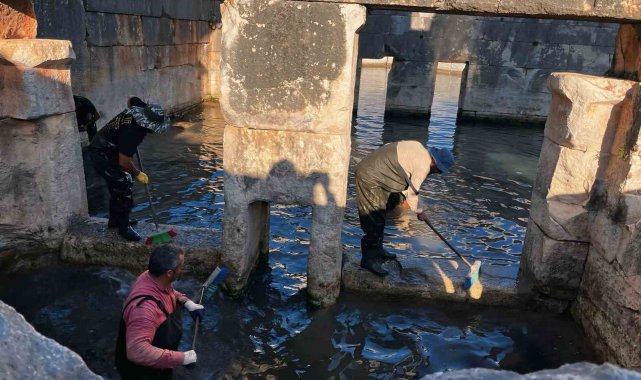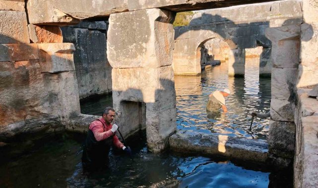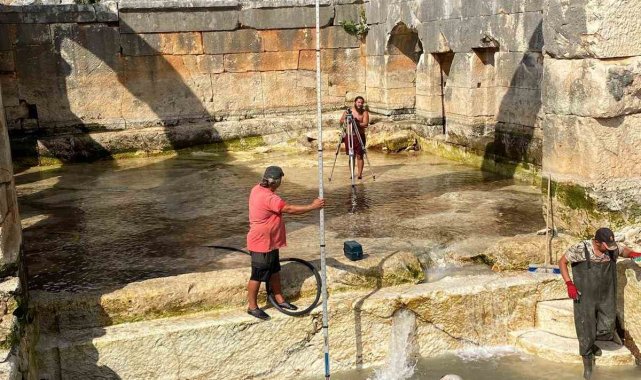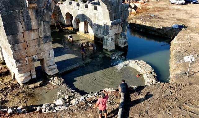 Antalya'nın Demre ilçesindeki Myra Antik Kenti sınırlarında yer alan ve milattan sonra 2. yüzyılda Roma döneminde inşa edildiği belirlenen termal yapı, yürütülen kazı ve koruma çalışmalarıyla ilk günkü işlevine kavuşturulmak üzere gün yüzüne çıkarılıyor. Myra ile antik liman kenti Andriake arasında, şifalı su kaynağı üzerine kurulu yapıdaki kazılarda ekipler yoğun su ve çamurla mücadele ederken, zaman zaman 16,5 derece sıcaklıktaki termal suda