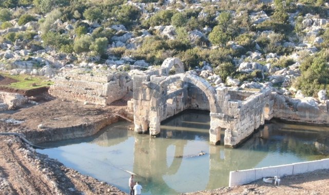 Antalya'nın Demre ilçesindeki Myra Antik Kenti sınırlarında yer alan ve milattan sonra 2. yüzyılda Roma döneminde inşa edildiği belirlenen termal yapı, yürütülen kazı ve koruma çalışmalarıyla ilk günkü işlevine kavuşturulmak üzere gün yüzüne çıkarılıyor. Myra ile antik liman kenti Andriake arasında, şifalı su kaynağı üzerine kurulu yapıdaki kazılarda ekipler yoğun su ve çamurla mücadele ederken, zaman zaman 16,5 derece sıcaklıktaki termal suda temizlenerek çalışmaya devam ediyor. Myra Antik Kenti Kazı Başkanı Prof. Dr. Nevzat Çevik, "Bu yapının benzeri bölgede yok, Roma İmparatorluk Dönemi mimarlığı açısından orijinal bir keşfin içindeyiz" dedi.