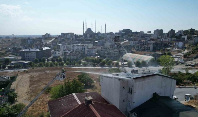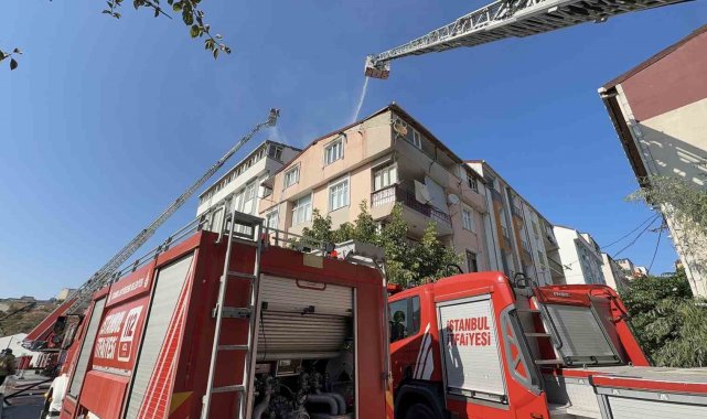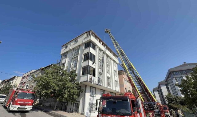 Arnavutköy'de 5 katlı binanın çatısında çıkan yangın paniğe neden oldu