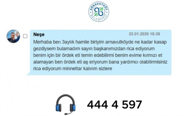Arnavutköy'de yaşayan 3 aylık hamile Neşe Yücel'in, aşerdiği ördek etini ilçede temin edemediğini belirterek belediyeye yaptığı başvuru, duyarlı bir refleksle karşılık buldu. Anne adayının talebi, Başkan Mustafa Candaroğlu'nun doğrudan talimatıyla gece saatlerinde değerlendirilerek kısa sürede çözüme kavuşturuldu.