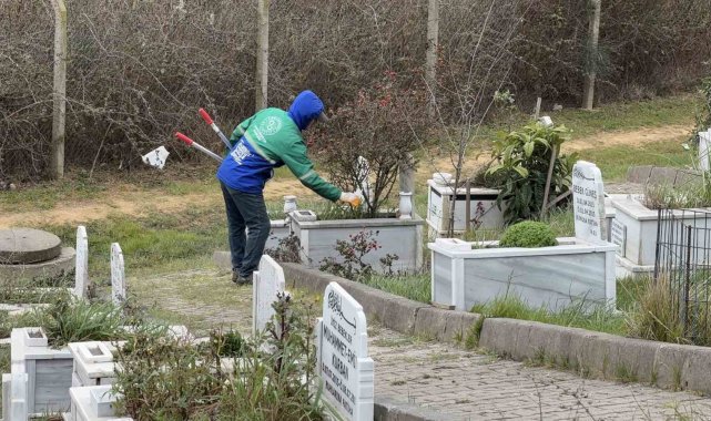 Arnavutköy'de bayram öncesi mezarlıklar temizlenerek ziyarete hazır hale getirildi