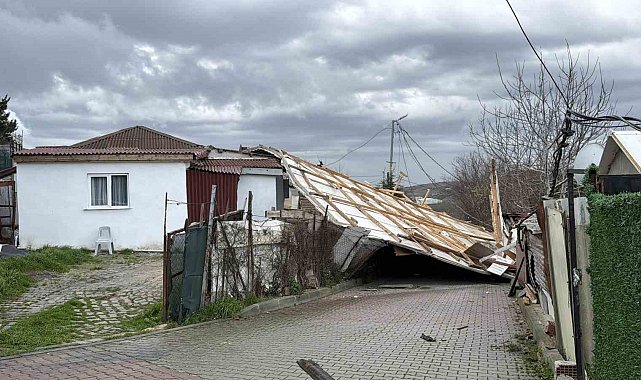 Olay, Arnavutköy'ün Boyalık Mahallesi'nde meydana geldi. Şiddetli rüzgarın etkisiyle bir evin çatısı yerinden koparak, yaklaşık 30 metre sürüklenerek yan sokaktaki bir evin üzerine ve sokağa düştü. Çatının düştüğü ev güvenlik gerekçesiyle tahliye edilirken, sokak tamamen trafiğe kapatıldı. İhbar üzerine olay yerine zabıta, itfaiye ve belediye ekipleri sevk edildi. İtfaiye ekipleri bölgede güvenlik önlemleri alırken, belediye ekipleri ise sokağın yeniden trafiğe açılması için çalışma başlattı. Yetkililer, çatının düştüğü yapıda hasar tespit çalışması yapılacağını belirtirken, bölgede çalışmalar sürüyor.