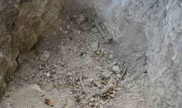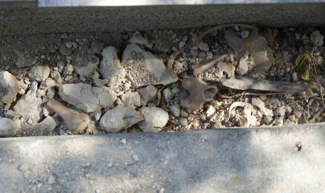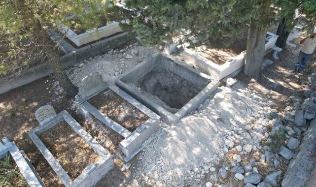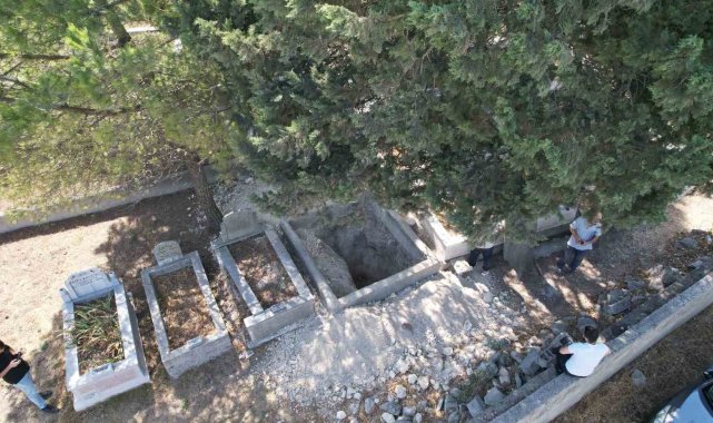 Öte yandan, definecilerin talan ettiği mezarlık ve çevresi dron kamerasıyla havadan da görüntülendi. Görüntülerde mezarlığın metrelerce kazılarak kemiklerin ortalığa çıktığı ve sağa sola savrulduğu görüldü. Çalışma yapan definecilerin etrafta bıraktığı eldiven ve define kazmaya yarayan eşyalar da görüntülendi.