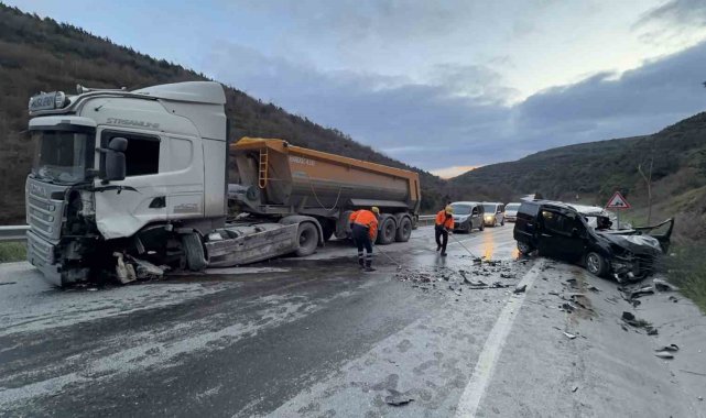 İstanbul Arnavutköy'de hafif ticari araç ile hafriyat kamyonunun çarpıştığı kazada 1 kişi hayatını kaybetti, 2 kişi yaralandı.