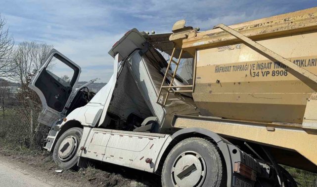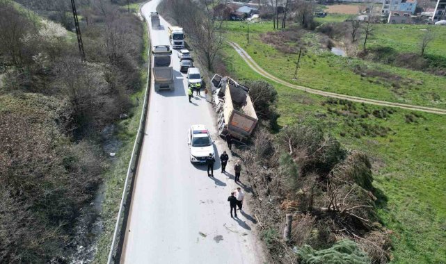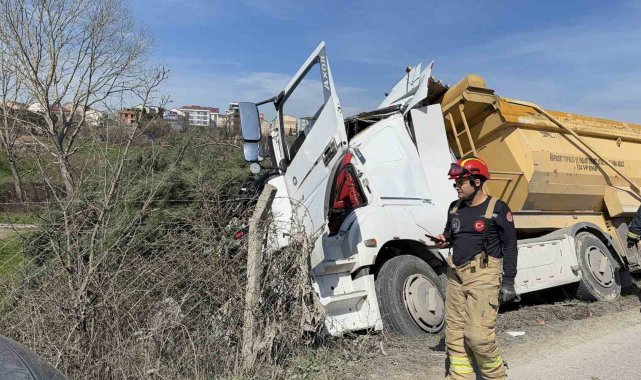 İstanbul'un Arnavutköy ilçesinde seyir halindeki hafriyat kamyonu kontrolden çıkarak yol kenarındaki çayırlık alana uçtu. Kazada sürücü hafif şekilde yaralanırken, olayda büyük bir facianın eşiğinden dönüldü.
