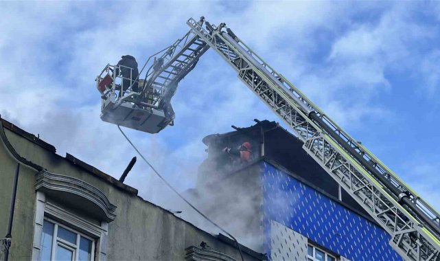 Arnavutköy'de korkutan yangın, çatı alev alev yandı