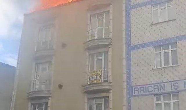 İstanbul'un Arnavutköy ilçesinde 4 katlı bir binanın çatısında çıkan yangın korku dolu anlara neden oldu. Alevler kısa sürede çatıyı sardı. Alev alev yanan bina dron kamerasıyla görüntülendi.
