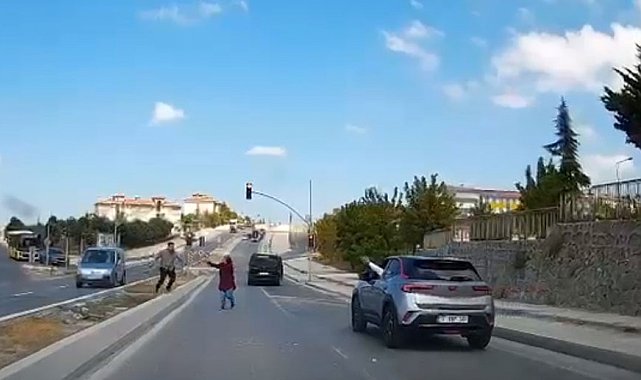 Arnavutköy'de trafikte taşlı saldırı kamerada