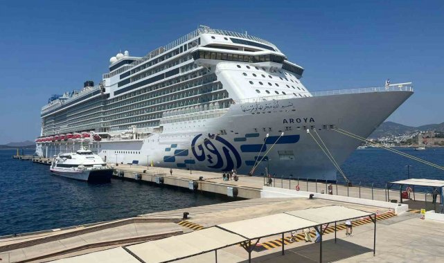 Muğla'nın Bodrum ilçesine gelen Aroya isimli dev yolcu gemisi, toplam 608 yolcu getirdi.