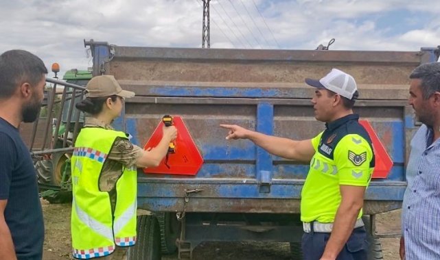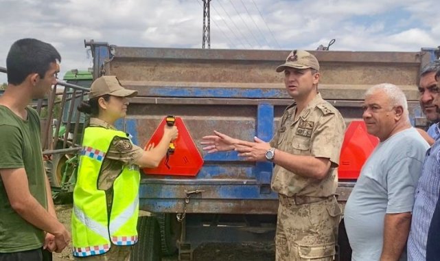 Jandarma ekipleri ayrıca tarım aletlerinin römorka güvenli bağlanması, karayoluna çıkış öncesi yapılması gereken kontroller ile yayaların ve diğer araç sürücülerinin can güvenliği konularında yapılması gerekenleri tek tek anlattı. Toplantı sonrasında çiftçilere 45 reflektör dağıtımı yapıldı.