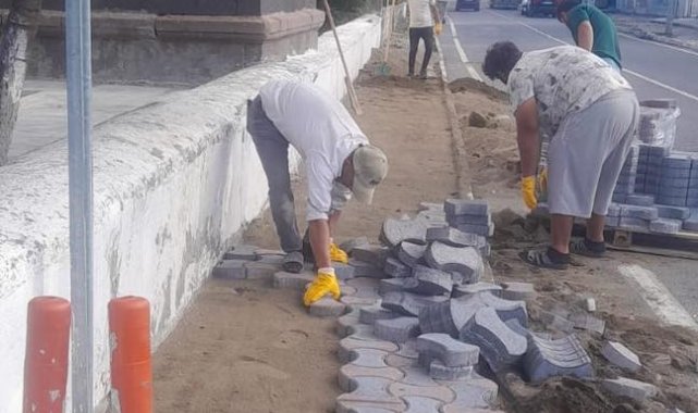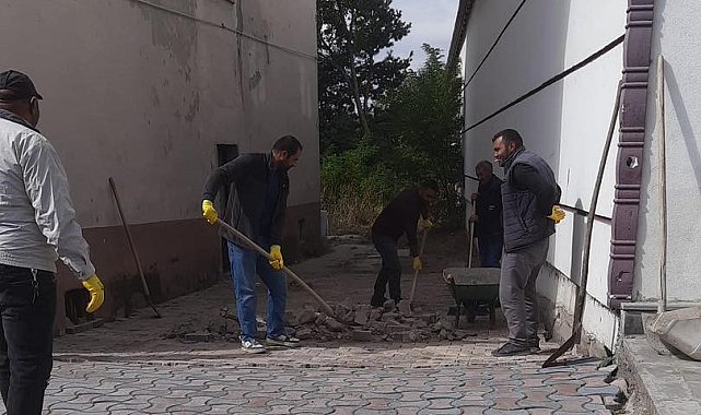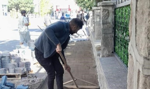 Arpaçay'da kaldırımlar kilitparke taş döşeniyor.