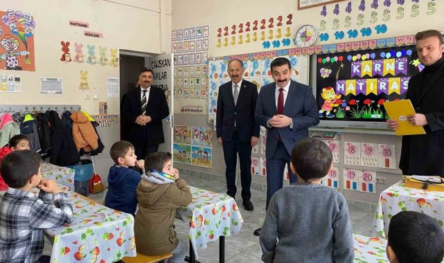 Arpaçay Kaymakamı Muhammed Burak Akköz, 2025-2026 eğitim-öğretim yılı birinci dönemi yarıyıl karne dağıtım törenlerine katılarak öğrencilerin karne sevincine ortak oldu.