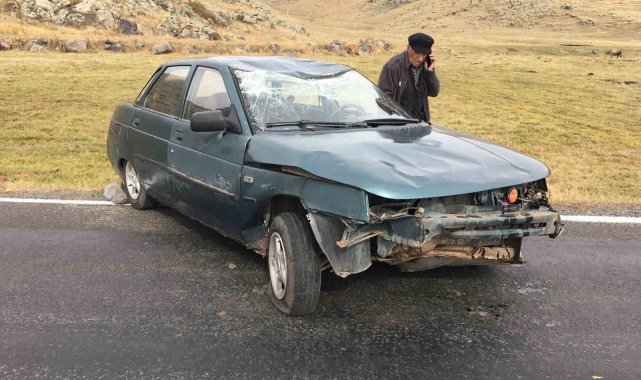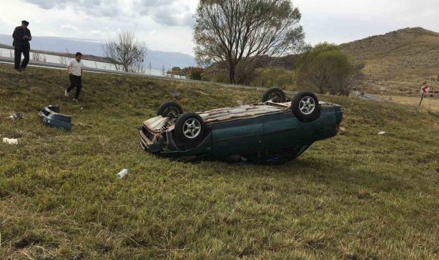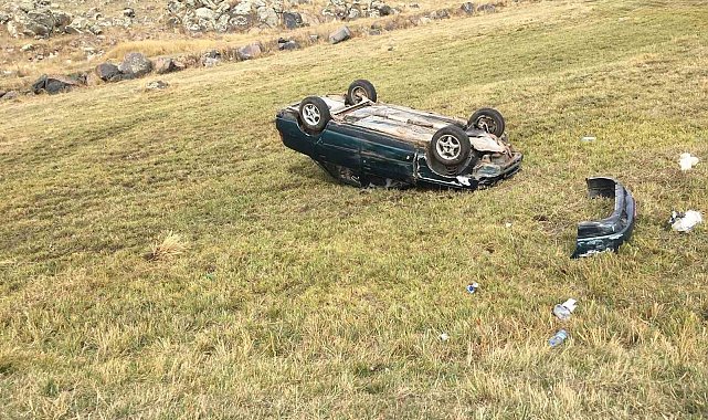 Arpaçay'da yoldan çıkan otomobil takla attı