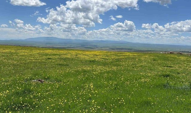 Kars'ın Arpaçay sınırları içerisinde yer alan Arpaçay Ovası, sarı, beyaz, kırmızı ve mor çiçeklerin açmasıyla kartpostallık manzaralar sunarken, yeşilin farklı tonlarıyla bütünleşen çiçekler görenleri hayran bırakıyor.
