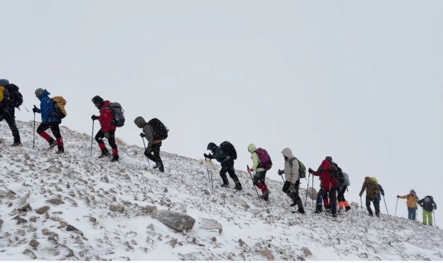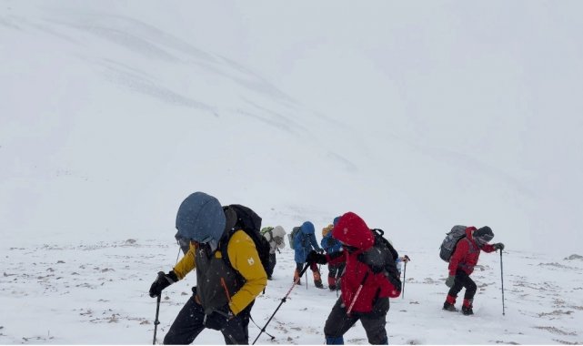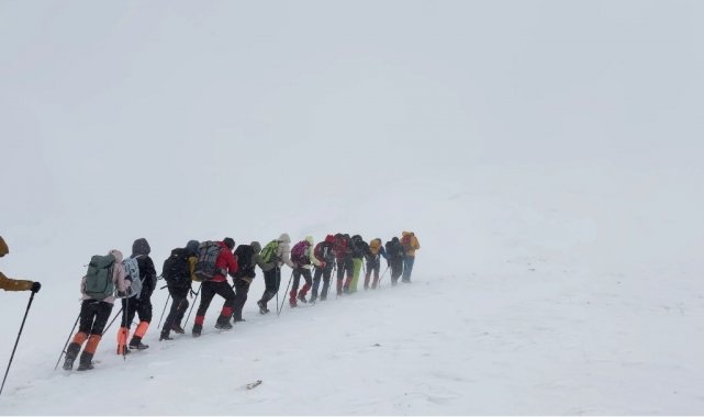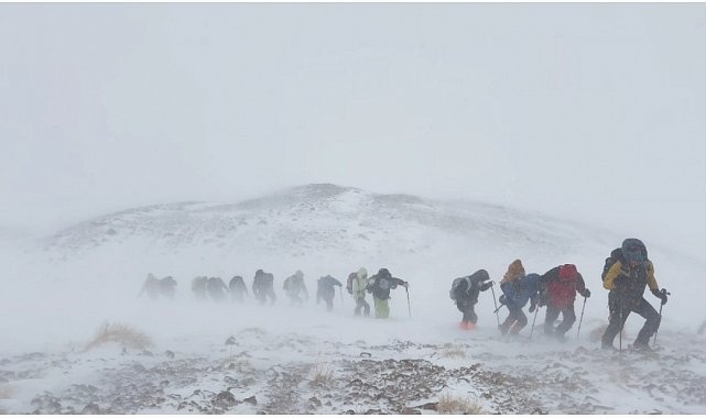 Van'ın 3 bin 537 rakımlı Artos Dağı, bu hafta sonu kış tırmanışı planlayan dağcı gruplarına geçit vermedi. Sabahın erken saatlerinde zirve tırmanışı için yola çıkan 17 kişilik ekip, 3 bin 225 metre irtifada şiddetli fırtına ve görüş mesafesini sıfıra inmesiyle geri dönmek zorunda kaldılar.