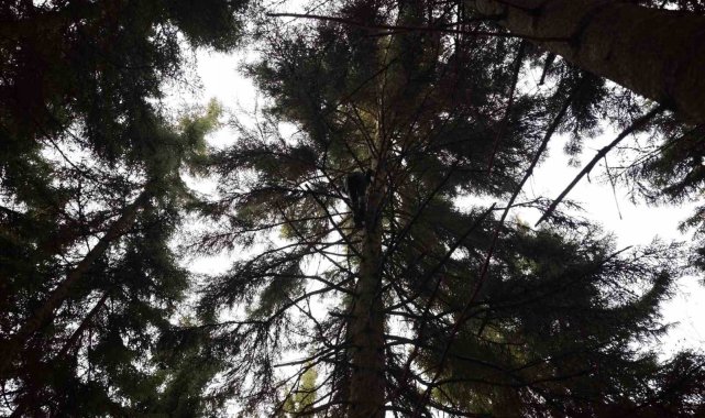 Artvin'de 40 metrelik göknar ağacının tepesine takılan dronu böyle kurtardılar