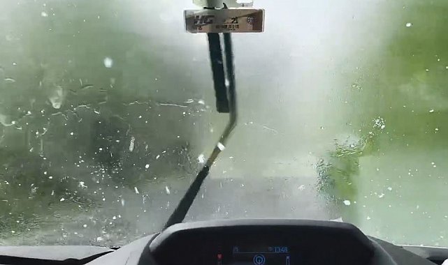 Artvin'in Şavşat ilçesinde aniden bastıran dolu, araç kamerasına yansıdı. Görüntülerde dolu yağışına araç sileceklerinin yetişmediği göründü.
