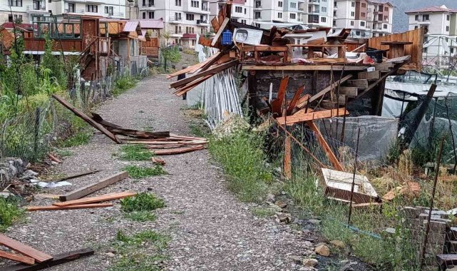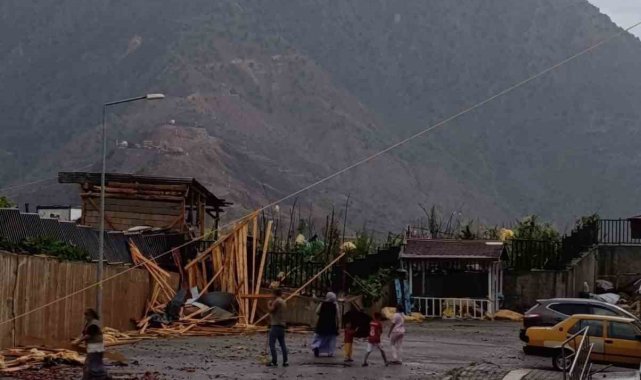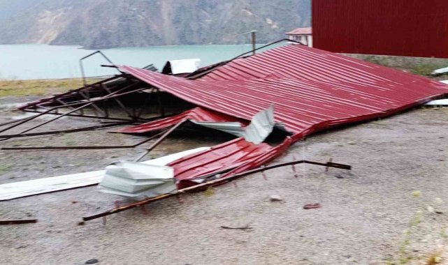 Artvin'in Yusufeli ilçesinde akşam saatlerinde etkili olan şiddetli yağmur ve fırtınada birçok ev ve iş yerinin çatısı uçtu.