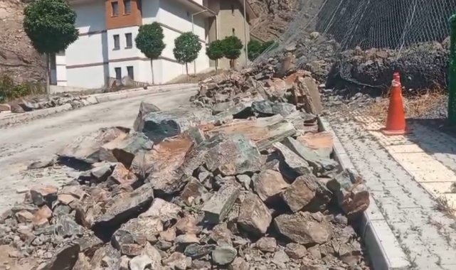 Yağmurdan kaynaklı ise bazı bölgelerde heyelan meydana geldi. Yamaçtan kopan toprak ve kaya parçaları yola düştü.