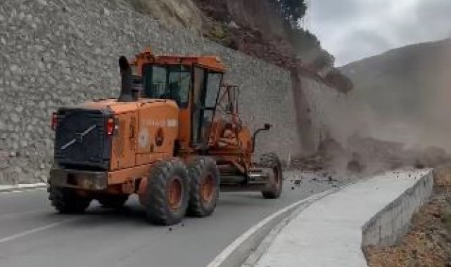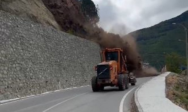 Olay sırasında bölgede yol temizleme çalışması yapan Karayolları'na ait iş makinesi, operatörünün heyelanın gelinişi fark etmesi sayesinde saniyelerle kurtuldu. Toprağın kaydığı anlar ise bir vatandaşın cep telefonu kamerasına yansıdı.