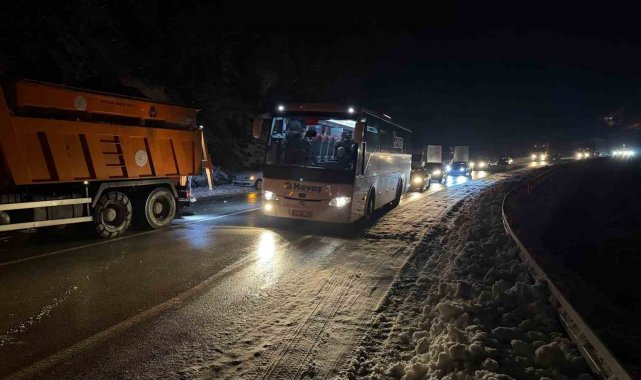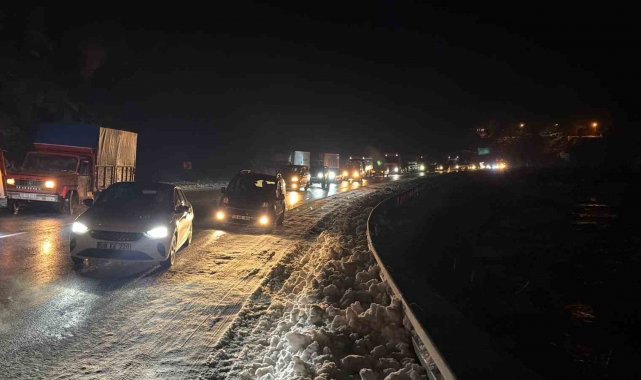 Ulaşımın durmasıyla birlikte her iki yönde de uzun araç kuyrukları oluşurken, bölgede etkili olan yoğun kar örtüsü, düşük hava sıcaklıkları ve buzlanma çalışmaları zorlaştırıyor.