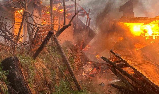 Artvin'de iftar vakti çıkan yangında 2 ev küle döndü