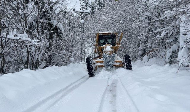 Kent merkezinde de karla kaplı cadde ve sokaklar belediye ekipleri tarafından temizleniyor. İş makineleri eşliğinde ana yollarda oluşan karlarla mücadele sürüyor.