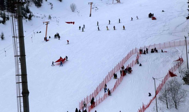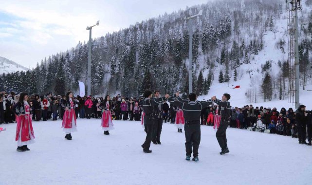 Şenlik kapsamında tulum ve akordiyon eşliğinde kar üzerinde horonlar oynanırken, ortaya renkli görüntüler çıktı. Kayak sporcuları ise ellerinde Türk bayraklarıyla piste çıkarak gösteri yaptı. Bayraklı inişler, izleyenlerden büyük alkış aldı.