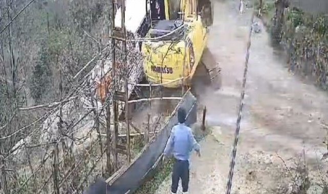 Artvin'in Arhavi ilçesinde çamur nedeniyle yolda kalan kamyoneti kurtarmak için bölgeye giden ekskavatör, kazaya neden oldu. Kaygan yolda kayan ekskavatör, kamyonete çarparak durdu. O anlar ise güvenlik kamerasına yansıdı.