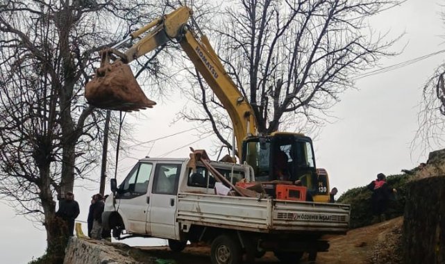 İlçeye bağlı Hacılar Mahallesi'nde doğal gaz hattı çalışması yapan işçilerin bulunduğu kamyonet, aşırı yağış sonucu kayganlaşan yolda mahsur kaldı. Yağmurla birlikte çamurlaşan yolda mahsur kalan kamyoneti kurtarmak için yine aynı şirkete ait bir ekskavatör bölgeye gönderildi. Ancak kaygan yol nedeniyle ekskavatör de kontrolünün kaybedilmesi sonucu kamyonete çarptı. Kısa süreli paniğe neden olan olayda kamyonet sürücüsü yaralandı. Olay yerine gelen sağlık ekipleri, yaralıyı hastaneye sevk etti. Kamyonet ve ekskavatör, çekici yardımıyla kurtarıldı. Yaşananlar ise güvenlik kamerasınca saniye saniye kaydedildi.