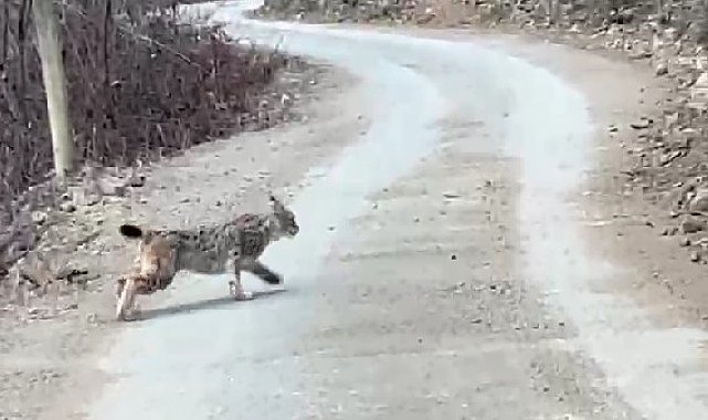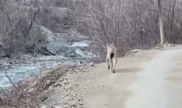 Artvin´in Yusufeli ilçesinde nesli tehlike altında olan bir vaşak, cep telefonu kamerasıyla kaydedildi.
