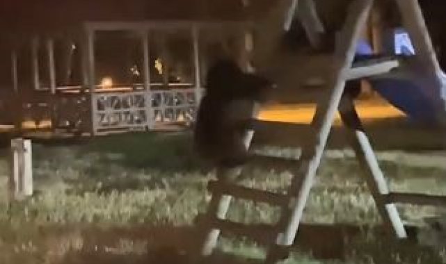 Artvin'in Şavşat ilçesindeki Sahara Milli Parkı'nda yavru ayıların çocuk parkındaki kaydıraktaki meraklı halleri cep telefonu kamerasına yansıdı.