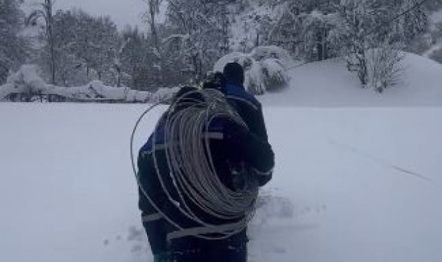 Özellikle kırsal ve yüksek rakımlı bölgelerde araçla ulaşımın mümkün olmadığı noktalarda ekipler, ağır ekipmanlarını sırtlayarak uzun mesafeleri yürüyerek kat ediyor. Zaman zaman kar üzerinde güçlükle ilerleyen ekipler, arızaya ulaşabilmek için saatler süren yürüyüşlerin ardından onarım çalışmalarını tamamlıyor.