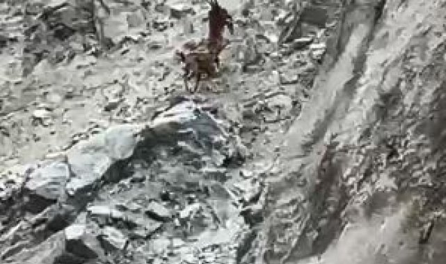 Artvin'de dağın yamacında karşılaşan iki dağ keçisi bölge hakimiyetini kabul ettirmek için kozlarını paylaştı. Keçilerin üstünlük kurma mücadelesi cep telefonu kamerasına yansıdı.