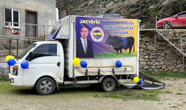 Artvin'de boğa yetiştiriciliği yapan Fenerbahçe taraftarı, 'Kadıköy Boğası' ismini verdiği boğasını Kadıköy'de bulunan boğa heykelinin yanına getirip takımına destek olmak istiyor.