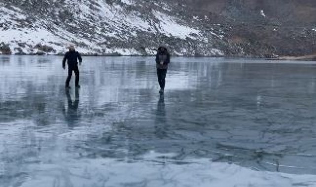 Hava sıcaklığının mevsim normallerinin altında seyretmesi nedeniyle göl yüzeyinde yaklaşık 35-40 santimetre kalınlığında buz tabakası oluştuğu belirtildi. Gençlerin buz üzerindeki renkli anları cep telefonu kamerasıyla kaydedildi.