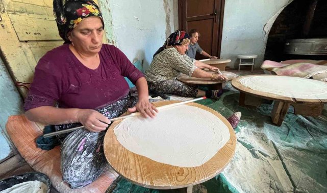 Artvin'in merkez ilçesine bağlı Sümbüllü Köyü'nde kadınlar, asırlık bir geleneği yaşatmaya devam ediyor. Köyde sonbaharın gelmesiyle birlikte odun sobası yakılıyor, hamurlar yoğruluyor, oklavalarla tahta masalarda yufkalar açılıyor. Kadınlar, imece usulüyle bir araya gelerek kışlık yufka, silor, erişte, makarna ve börek hazırlıyor.