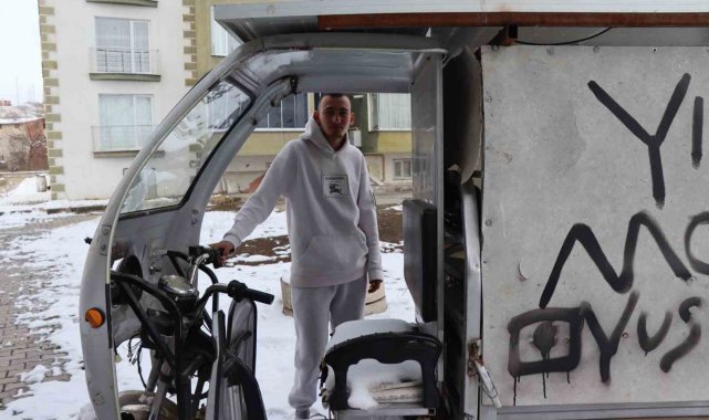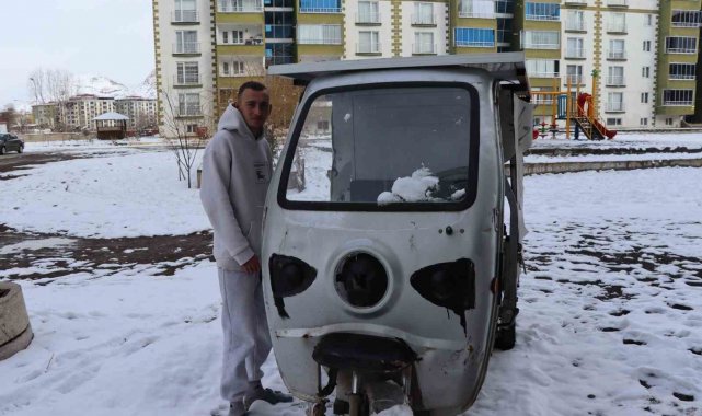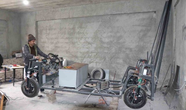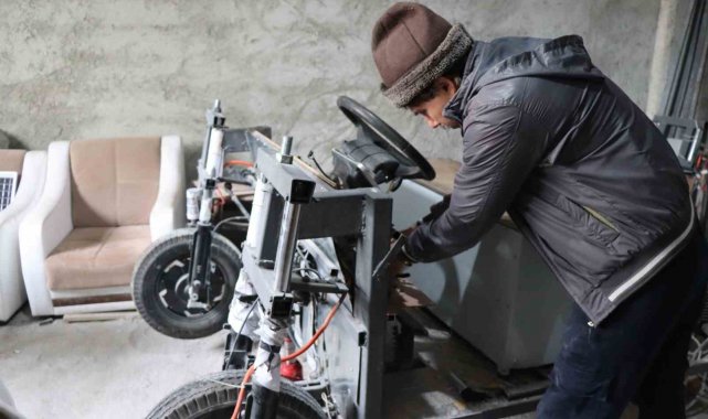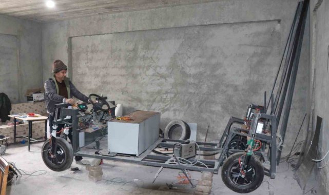 Erzurum'un Oltu ilçesinde bir asansör ustası, güneş panelli ve adına "otosiklet" dediği araçla dikkatleri üzerine çekti.