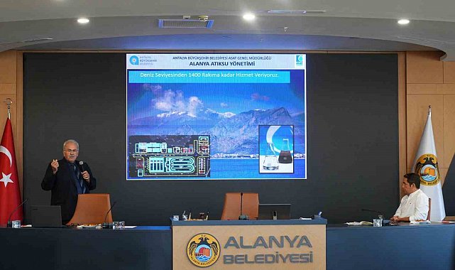 Alanya Belediyesi ev sahipliğinde Belediye Meclis Salonu'nda gerçekleştirilen halka açık toplantıda, ASAT Genel Müdür Yardımcısı Osman Yıldız, sunum yaptı.