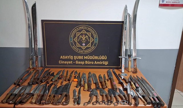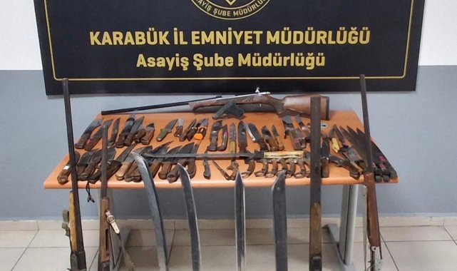 Operasyonlarda 1 ruhsatsız tabanca, 6 ruhsatsız av tüfeği, 1 ses tabancası, 15 fişek, 64 bıçak, kılıç ve kama ile 20 uyuşturucu hap ve 17,3 gram bonzai ele geçirildi.