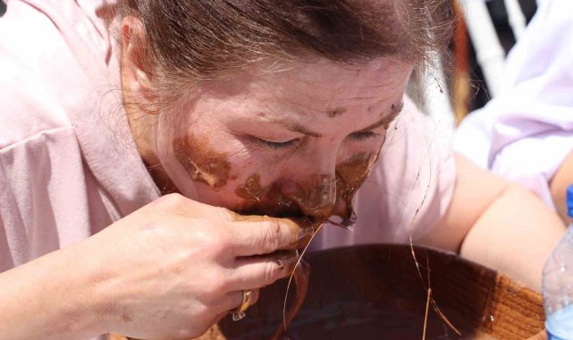 Çikolata yeme yarışmasında kıyasıya mücadele
