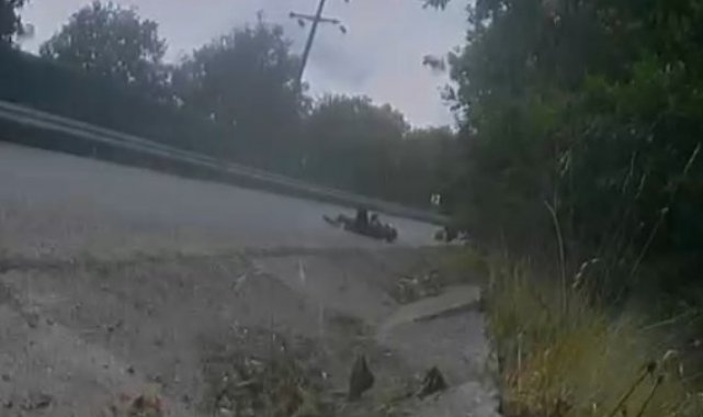 Kocaeli'nin Gebze ilçesine bağlı Ovacık ile Mudarlı mahalleleri arasındaki yolda, asfaltın ortasında bulunan derin yarık nedeniyle motosikletinin kontrolünü kaybeden sürücü, düşerek yaralandı. Kaza anı saniye saniye kameraya yansıdı.