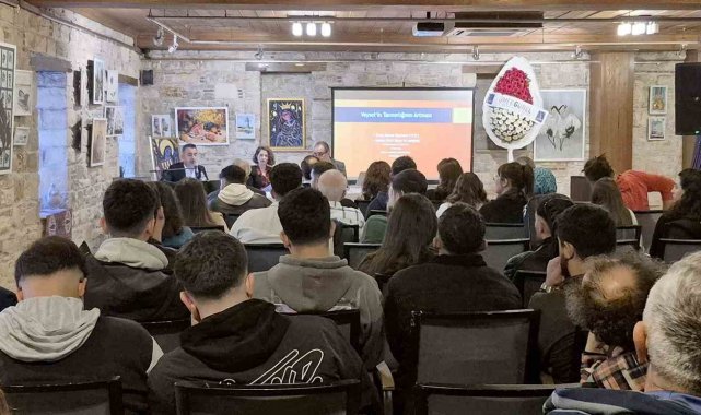 İbramaki Sanat Galerisi'nde, Kuşadası Belediyesi ve Adnan Menderes Üniversitesi (ADÜ) Devlet Konservatuvarı iş birliğiyle "Şu Geniş Dünyaya Sığmayan Aşık Veysel" konulu panel düzenlendi.