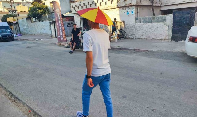 Kafasında şemsiye ile gezen Akpınar'ı gören Mehdi Yağız ise, "İlk gördüğümde çok şaşırdım. Ama havalar çok sıcak artık bu tür görüntüler normal. Son iki gündür 55-60 dereceyi gördük. Arkadaşımı yadırgamıyorum. Belki sıcaklığı bir 10 derece düşürüyor. Kendince böyle bir çözüm bulmuş" diye konuştu.